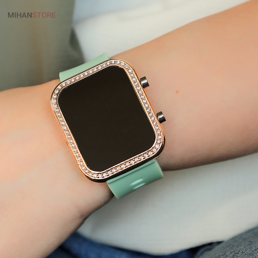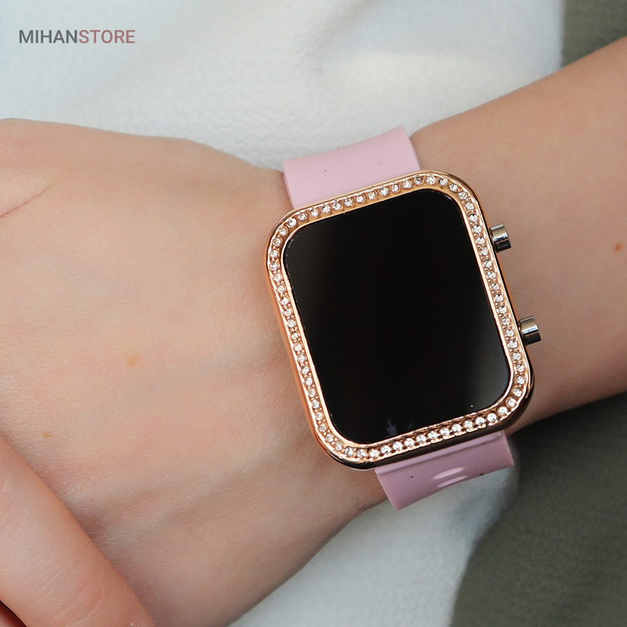 ساعت مچی از قدیم تا امروز یکی از ابزار های سنجش زمان بوده و هست اما تفاوتی که میتوانیم در ساعت مچی های امروزه حس کنیم، اهمیت وجود آنها در استایل هر شخص است. اگر که شما کمی به نوع و سبک لباس پوشیدنتان اهمیت میدهید و میخواهید در نگاه اطرافیان یک شخص ایده آل باشید، پس باید ساعت مچی را به عنوان بخشی از استایل تان بدانید و هنگام خرید ساعت مچی به سبک استایل خودتان توجه کنید. ساعت مچی بیانگر دقت و ارزشی است که شما به استایل خود قائل هستید.این محصول یکی از جذابترین ساعت های ال ای دی موجود در بازار است که طرح اپل واچ طراحی شده است. صفحه نمایشی و مستطیل شکل ساعت در ابعاد 33 × 40 میلی‌متر طراحی شده و ضخامت آن در قسمت بدنه 10 میلی‌متر است.نگین های زیبا طراحی شده دور بدنه ساعت جذابیت آن را دو چندان کرده. این ساعت دارای وزن سبک است و سنگینی زیادی روی مچ دست شما ندارد.صفحه بسیار زیبا و شفاف که با لمس دکمه کنار ساعت صفحه نمایش به شکلی زیبا پدیدار میشود، مزیت جالب این ساعت با نمونه های مشابه در صفحه نمایش آن است که اعداد پنل دیجیتالی ندارند و دارای نمایشگر جذاب فول اسکرین با اعداد بزرگ و شفاف است، بند این ساعت سلیکونی است و قفل آن سگکی طراحی شده که مناسب هر سایزی است. این ساعت همراه با جعبه کادویی شکیل ارسال میشود در رنگ های متنوع و جذاب عرضه شده است که در سبد خرید می توانید رنگ مورد نظر را انتخاب کنید.