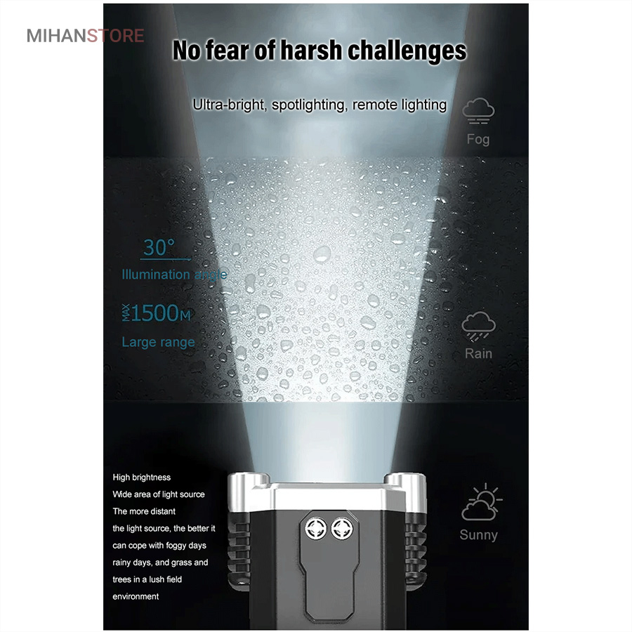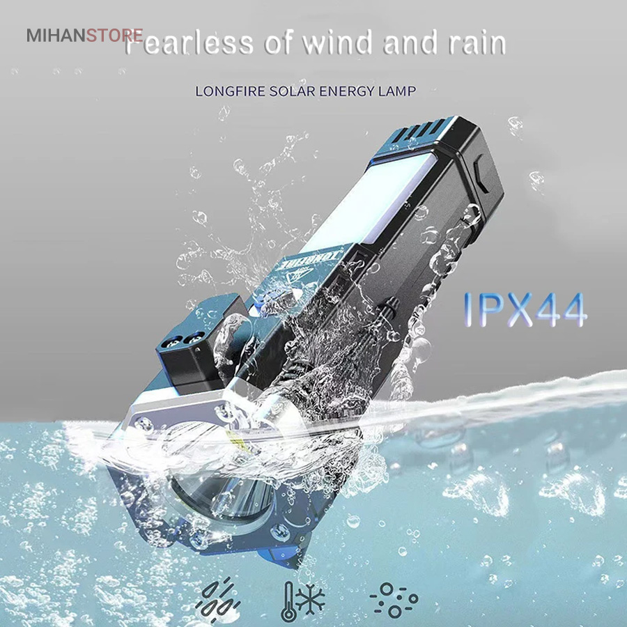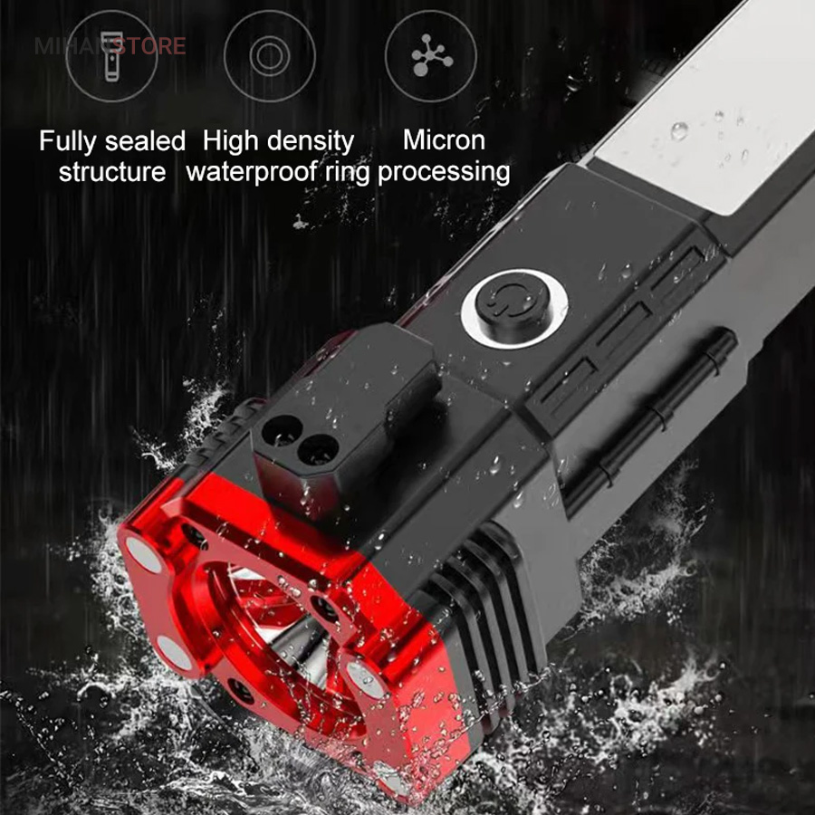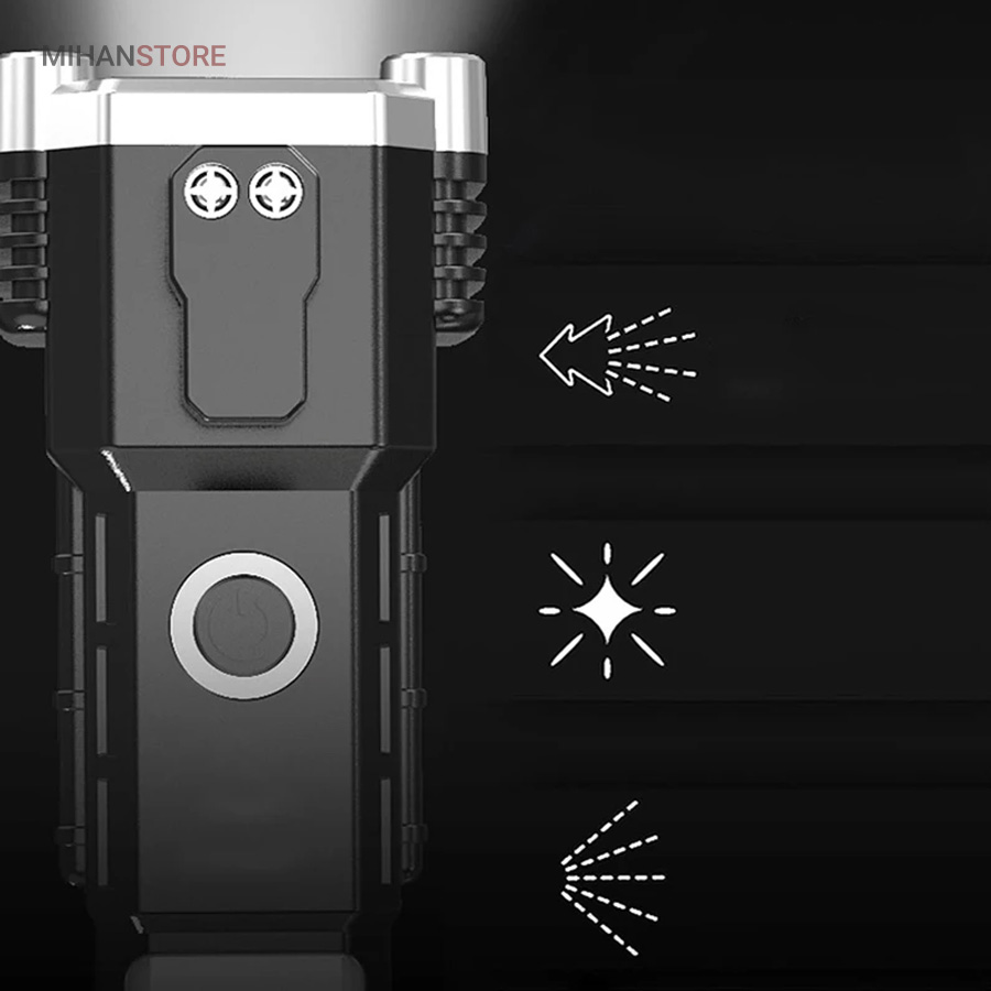 این چراغ قوه شارژی که جنس بدنه از آلیاژ است و دربرابر ضربه بسیار مقاوم است. دارای سیستم ضد آب است و ایمن برای استفاده حتی در زیر باران میباشد. کابل های مهر و موم شده با کیفیت بالا به گونه ای که می تواند حتی در هنگام باران نیز به کار خود ادامه دهد. شارژ چراغ قوه از طریق کابل USB به سادگی با اتصال به پاور بانک و برق شهری و ... میباشد.نور چراغ نور سفید 800/3800 است.محدوده نور حدود 300 متر است.نور بصورت 4 حالت روشنایی نور قوی بالا/نور کم/نور بارق/نور جانبی COBاست و با باتری: 18650 باتری آلومینیومی شارژی که داخل آن تعبیه شده است کار میکند . این چراغ قوه شما را از هرنوع چراغ اضطراری دیگر بی نیاز می سازد.