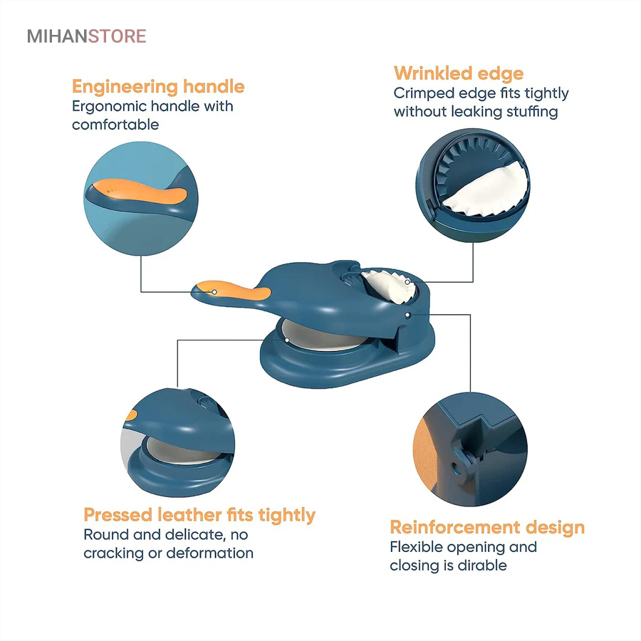 اما کار برای شما ساده تر از این خواهد بود ، دیگر نیازی به پهن کردن خمیر و اندازه زدن آن برای قرار دادن درون قالب نخواهید داشت ، در زیر دسته پیراشکی زن خانگی یک قالب برای پهن کردن خمیر وجود دارد که کار را برای شما بسیار ساده تر نموده ، کافی است دستگیره را بلند کنید و مقداری خمیر بر روی قالب بگذارید ، حال دسته را به سمت پایین آورید تا کار پهن کردن خمیر انجام شود ، خمیر پهن شده برای قرار دادن درون قالب پیراشکی آماده شده ، درون آن را پر کنید و خمیر را ببندید ، یک پیراشکی صدفی شکل زیبا برای طبخ آماده است . علاوه بر پیراشکی می توانید از این محصول برای تهیه سمبوسه و برخی از انواع شیرینی ها نیز استفاده کنید .