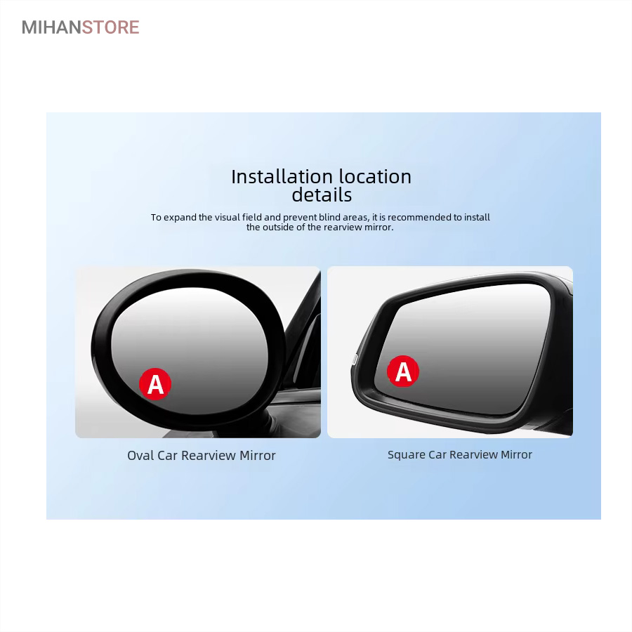 این آینه به عنوان کمکی آینه بغل کاربرد دارد و رانندگی ایمن تری را برای شما به ارمغان می آورد. معمولا در پیچ ها ، تغییر خطوط و یا پارک خودرو نقاط کوری روی آینه بغل به وجود می آید که در این قسمت این آینه کمکی به کمک شما می آید. این آینه تصویر HD بسیار شفافی را ارائه می دهد و جنس بدنه هم ABS می باشد.