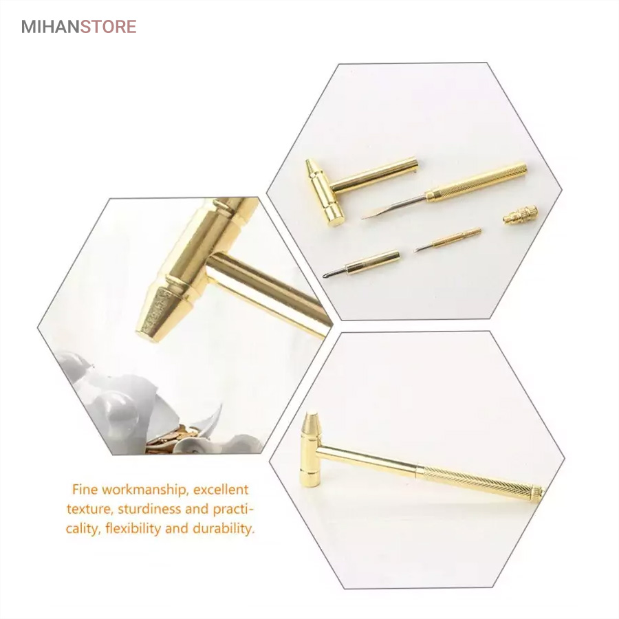 محصولی جدید ، کاربردی و البته با طراحی ظاهری زیبا است که تولید شده از جنس فلز مقاوم با تنوع رنگ طلایی می باشد . این کالا در حالت معمول یک چکش کوچک به طول کلی 16 سانتی متر با سری 5.4 سانتی متری است که از آن می توانید برای کارهای کوچک نظیر زدن میخ به دیوار استفاده کنید. اما تمام وجه تمایز کالا درون چکش است. اگر به جز چکش به پیچ گوشتی نیاز پیدا کردید ، کافی است انتهای دسته چکش را به صورت پیچی باز کنید ، خواهید دید یک پیچ گوشتی دو سر از درون آن خارج می شود که می توانید متناسب با نیاز ، آن را به کار گیرید .اما اگر به یک پیچ گوشتی کوچک چهار سو نیاز داشتید ، نگران نباشید ، انتهای دسته پیچ گوشتی دو سو را باز کنید ، یک پیچ گوشتی چهارسو را خواهید دید که نیاز شما را پاسخ خواهد داد ، ولی این چکش و پیچ گوشتی مجهز تر از آن است که تصور می کنید . انتهای پیچ گوشتی چهار سو یک مینی پیچ گوشتی دو سوی دیگر نیز تعبیه شده که در انتهای خود یک پیچ گوشتی ریز چهار سو دارد ، بدین ترتیب محصول شامل یک چکش و چهار پیچ گوشتی با سایز های متنوع تعبیه شده درون دسته خود می باشد که در بنا بر نوع نیاز می توانید از آنها استفاده کنید . سهولت در حمل و جابه جایی و نیاز به کمترین فضای ممکن برای نگهداری از جمله خصوصیات دیگر چکش پیچ گوشتی دار به شمار می رود .
