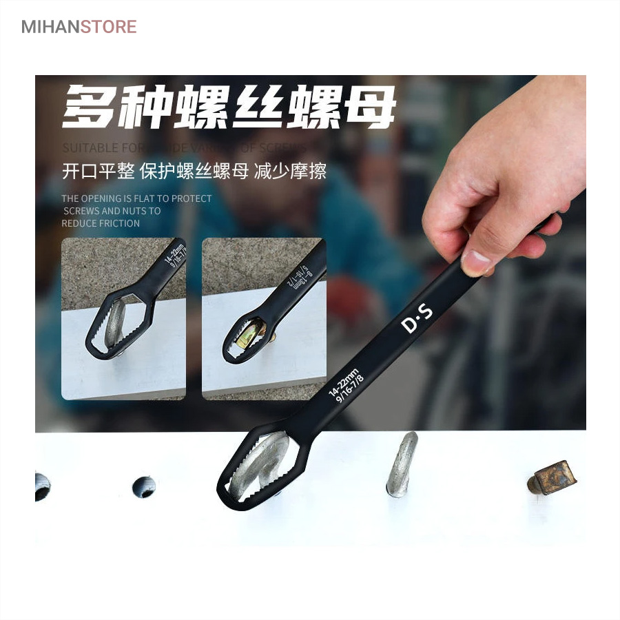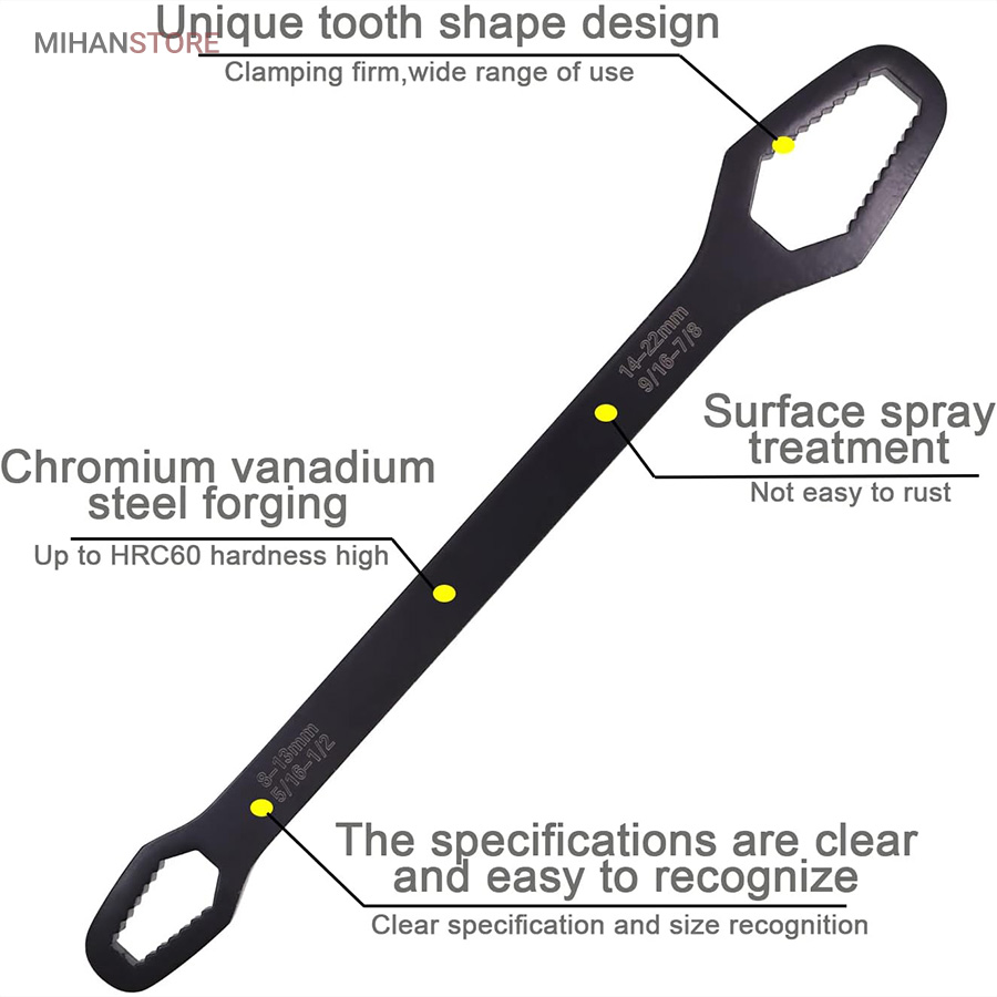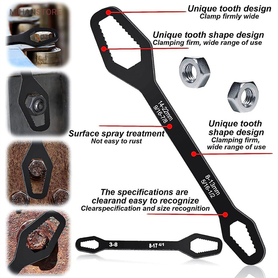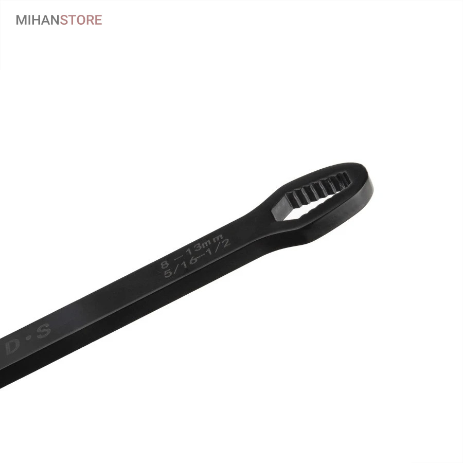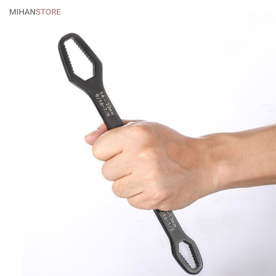 آچار دو سر رینگی همه کاره 8-22 مشکل بیشتر عاشقان ابزار و تمام فنی کاران را حل کرده است ، همیشه همراه داشتن یک کیف ابزار کامل بسیار دشوار و سنگین هست و در بیشتر مواقع آچار ها بیشترین وزن یک کیف ابزار به خود اختصاص می دهند ، آچار همه کاره دوسر رینگی 8-22 با دارا بودن 14 سایز از مهره بهترین جایزین ست های سنگین آچار های رینگی می باشند. با خرید آچار همه کاره دوسر رینگی دیگر از ناقص شدن آچارهای خود در زمان جابجایی کیف ابزار آسوه هستید، نیازی به حمل تعداد زیاد آچار ندارید و تنها یک آچار برای شما کفایت می کند. آلیاژ آچار همه کاره دوسر رینگی 8-22 از بالاترین کیفیت فولاد ساخته شده تا در برابر رطوبت و سایش مقاومت لازمه را داشته باشد. بهترین گزینه برای داخل ماشین  و کسانی که کمپ می کنند یا دوچرخه سوارانی که فضای کمی برای حمل کیف ابزار های بزگ و پر سروصدا ندارند می باشد .