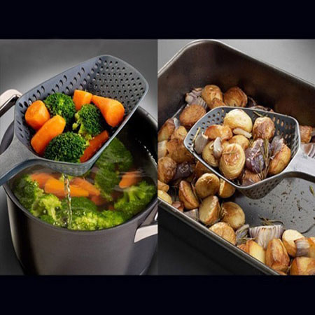 آبکش قاشقی محصولی جدید و بسیار کاربردی برای تمام آشپزخانه ها می باشد. این محصول که با جنس بدنه PVC تولید شده است بسیار با کیفیت می باشد و قابل استفاده برای ظروف تفلون و سایر ظروف می باشد. از این قاشق برای آب کشی میوه و سبزیجات در آشپزخانه استفاده می شود. این وسیله در رنگهای مختلف عرضه شده است که در هنگام تکمیل فرم سفارش می توانید رنگ مورد نظر خود را در قسمت پیغام ذکر نمایید.
